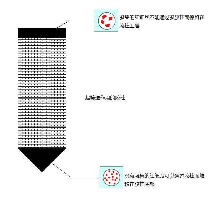 微柱凝膠技術(shù)是液相技術(shù)與固相技術(shù)的巧妙組合,是凝膠過濾技術(shù)、離心技術(shù)、紅細(xì)胞凝集試驗(yàn)技術(shù)(特異性抗體抗原反應(yīng))的完美結(jié)合。通過對凝膠種類的選擇和凝 膠濃度的調(diào)節(jié)來控制分子篩孔徑大小,使分子篩只允許游離紅細(xì)胞通過,從而達(dá)到分辯凝集紅細(xì)胞和非凝集紅細(xì)胞的目的。